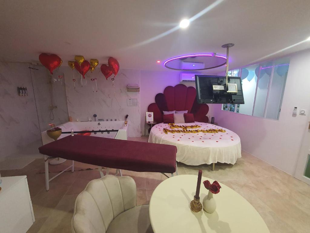 Niché sur les rives enchanteresses de Maraussan, l’Aphrodisia Loveconcept est le refuge idéal pour les couples en quête d’intimité et de romance. À seulement quelques kilomètres des majestueuses Neuf Écluses de Fonsérannes et de la cathédrale Saint-Nazaire, cet appartement vous promet une escapade inoubliable. Imaginez-vous savourant un verre de vin sur la terrasse ensoleillée, bercés par le doux murmure des vagues. La connexion Wi-Fi gratuite et une climatisation confortable ajoutent une touche de modernité à ce havre de paix.