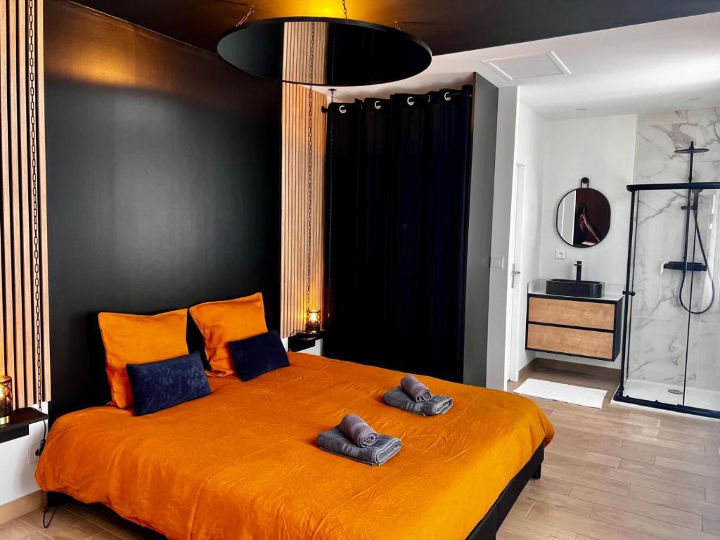 À l’intérieur, laissez-vous séduire par le luxe de votre espace privatif. La chambre élégante, le salon confortable et la cuisine entièrement équipée vous offrent tout le nécessaire pour un séjour intime. Après une journée de découvertes, plongez dans le bain à remous pour une parenthèse de bien-être, ou détendez-vous sur la terrasse en contemplant le ciel étoilé. Avec le Wi-Fi gratuit à votre disposition, partagez vos souvenirs en temps réel. Au Boudoir Margot, chaque instant devient une douce promesse d’amour.
