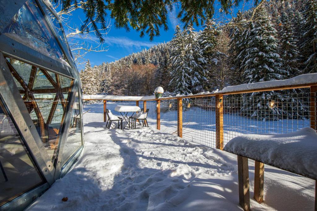 Dompter les cimes du Vercors, un cocon romantique vous attend au Dôme panoramique. Ici, les murmures doux du vent caressent la sérénité des paysages. Un parfum de sapin emplit l'air frais tandis que la lumière douce du matin pénètre par les grandes baies vitrées. Sur la terrasse, le crépitement d'un café chaud invite à partager des instants suspendus.