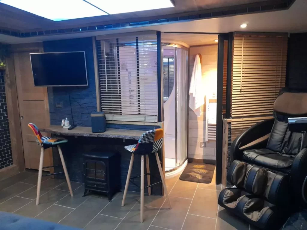 Dans une love room avec jacuzzi privatif à Chambéry, vous profitez de votre spa rien qu’à deux, sans horaires ni regards extérieurs. L’expérience se prolonge souvent avec sauna privé, douche à l’italienne, ciel étoilé, jeux de lumière, cheminée, terrasse ou équipements premium pour des instants sensuels et complices.